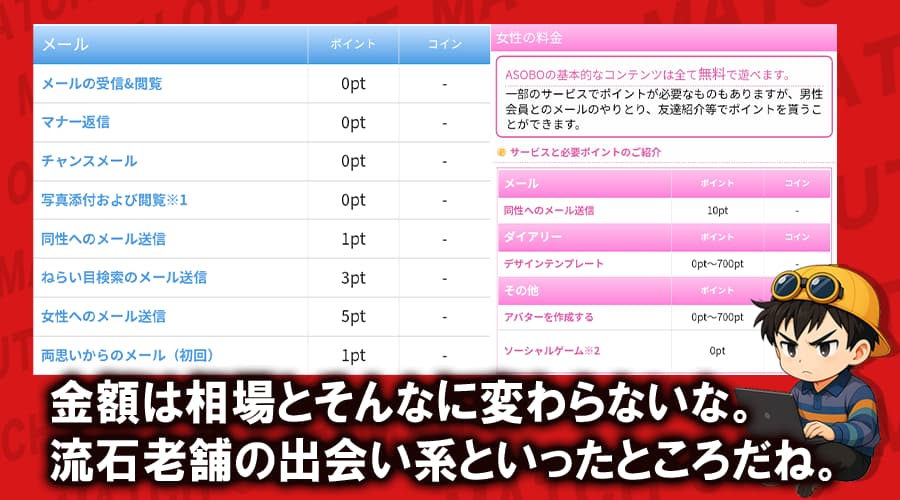 ASOBOの料金について調べてみると、このポイント料金表が見つかった。
