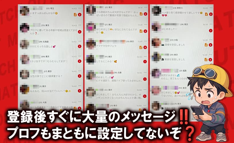 - 登録直後から大量のメッセージが届いて不自然