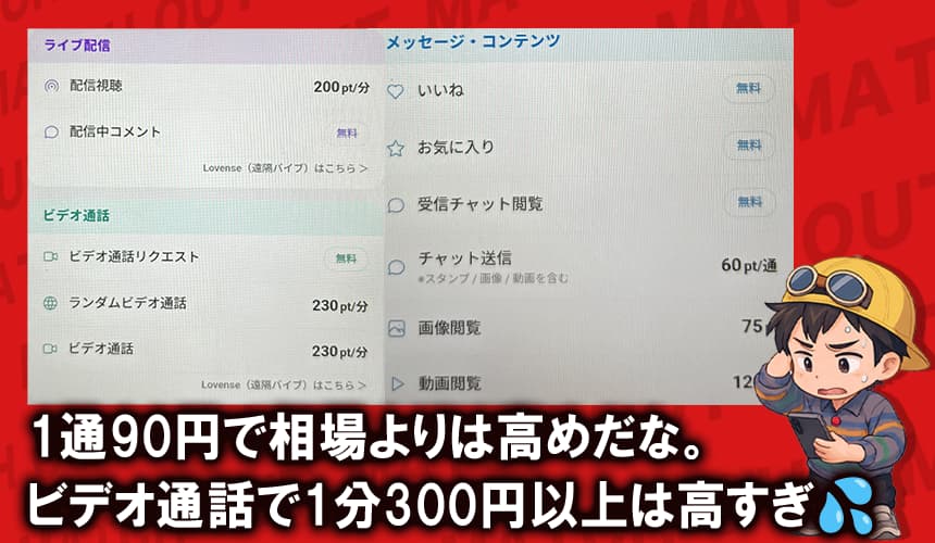 実際にやり取りを続けるには、メッセージ送信やビデオ通話でポイントがどんどん消費されるよな。