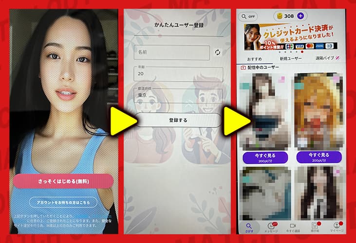 匿名で利用できて、日本人女性とリアルタイムで1対1のビデオ通話ができる、という点が大きな売りみたいだな。