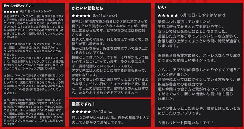App Storeの高評価レビューも実際の内容とはかけ離れた声ばかりで、サクラっぽさを感じるものばかりだったぞ。