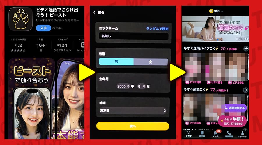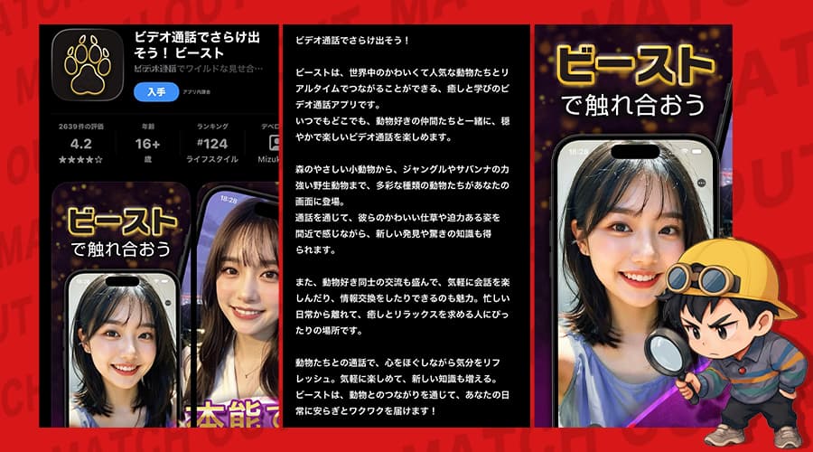 で、気になったから俺自身が「ビーストのビデオ通話アプリ」を実際にインストールして、登録から中身までガッツリ検証してみたんだ。
