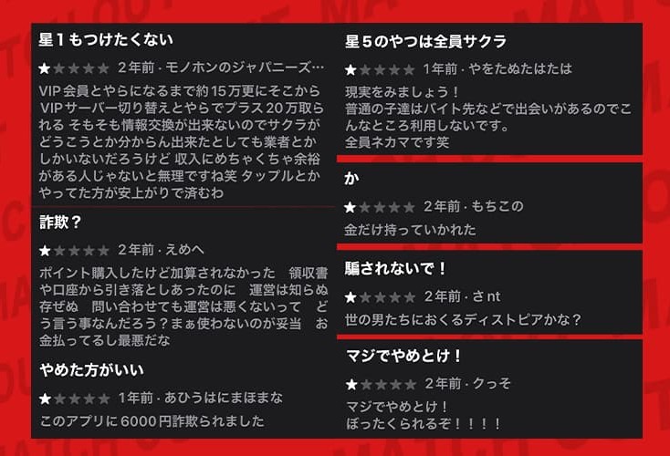 App Storeの低評価レビューでも、詐欺られた等の被害報告が多いし、これだけの声と俺の検証結果が一致している事実は無視できないな。