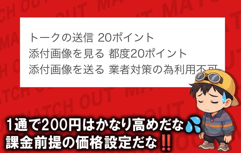 メッセージ1通で約200円かかる計算になるから、やり取りを重ねるとすぐに課金額が膨らむ。