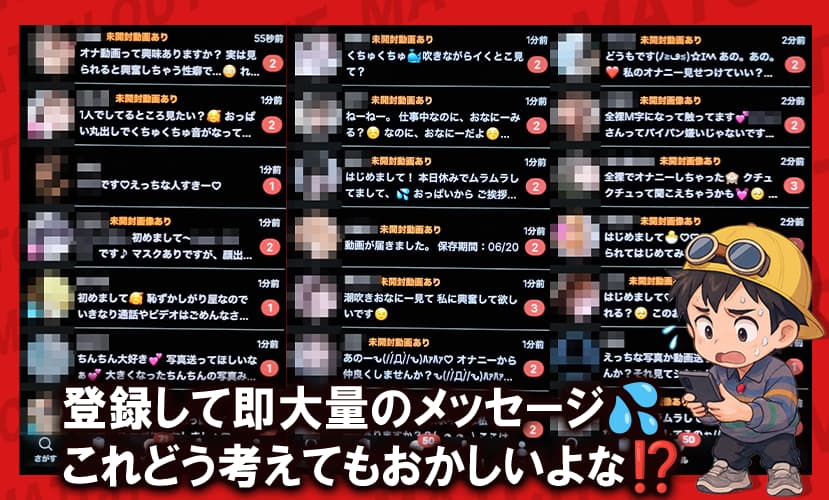 登録した瞬間から100件以上のエロ誘いメッセージが飛んできて、マジで異常だった…(;・∀・)