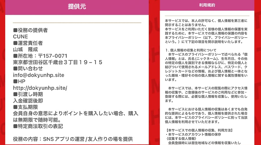 しかも、どきゅーんアプリは「出会い」を前面に出しているのに、利用規約では出会い目的を否定している。