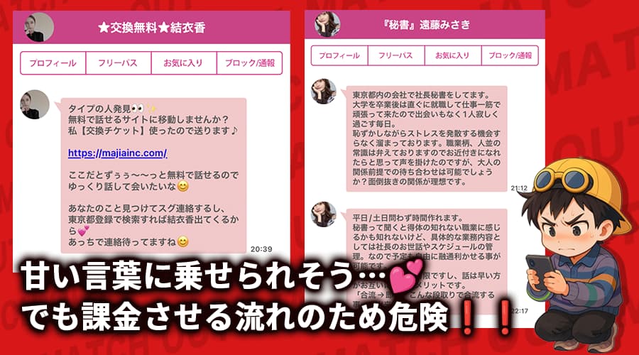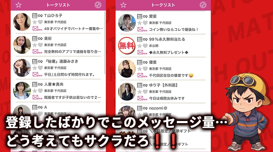 俺自身、登録直後から都合よくメッセージが飛んできたり、「今すぐ会えそう」な流れに何度も引っかかってきたからな…💦