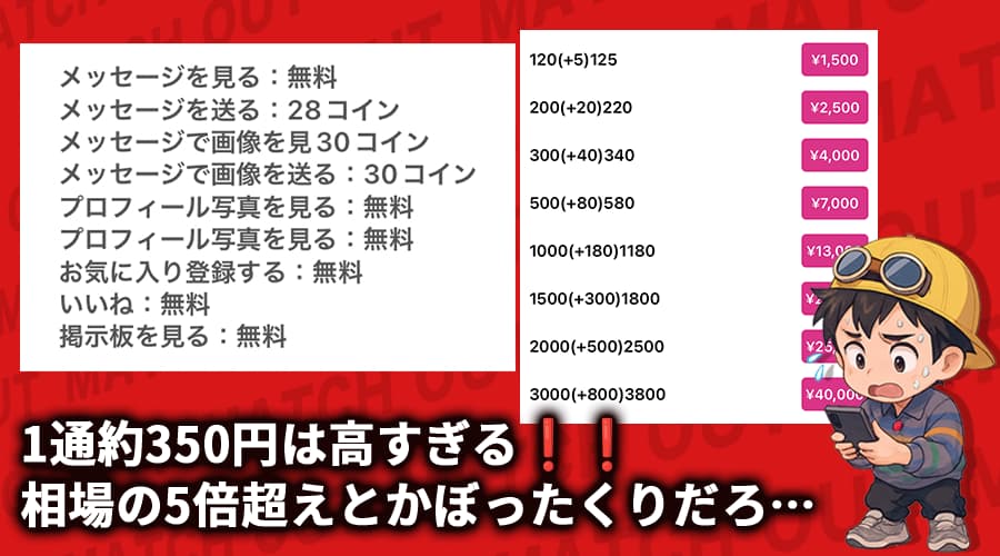 - メッセージ料金が相場よりかなり高額