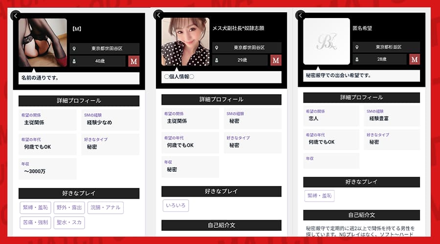 「M男くんに会いたい💕」「調教してほしい///」「ホテルでガンシャしてくれる?❤️」みたいな、かなり直球な内容ばかり。