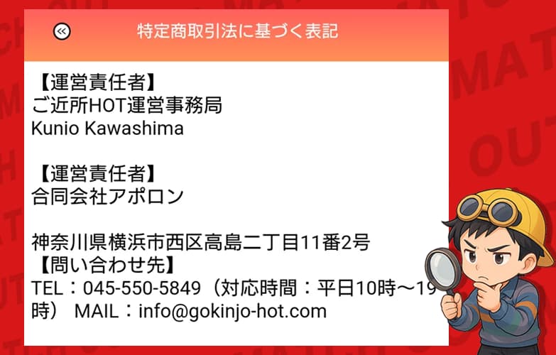 そこで今回は、「ご近所ホット」の特定商取引法表記や各種届け出について、実際に確認してみました。