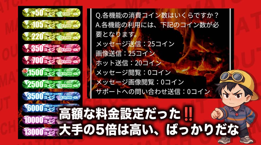 大手や優良アプリであれば普通は、月額制なのか、ポイント制なのか、メッセージ送信にいくらかかるのかが明確に書かれてるよな。