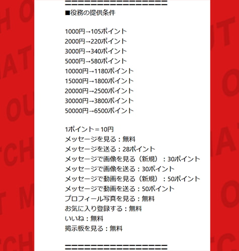 確認すると、ご近所LOVERSはメッセージ送信ごとに課金が発生するポイント制だね。