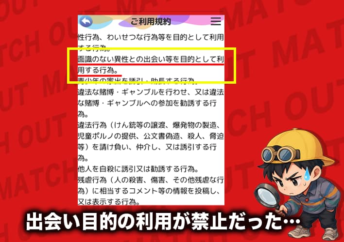 - 出会い目的が規約で禁止されていた