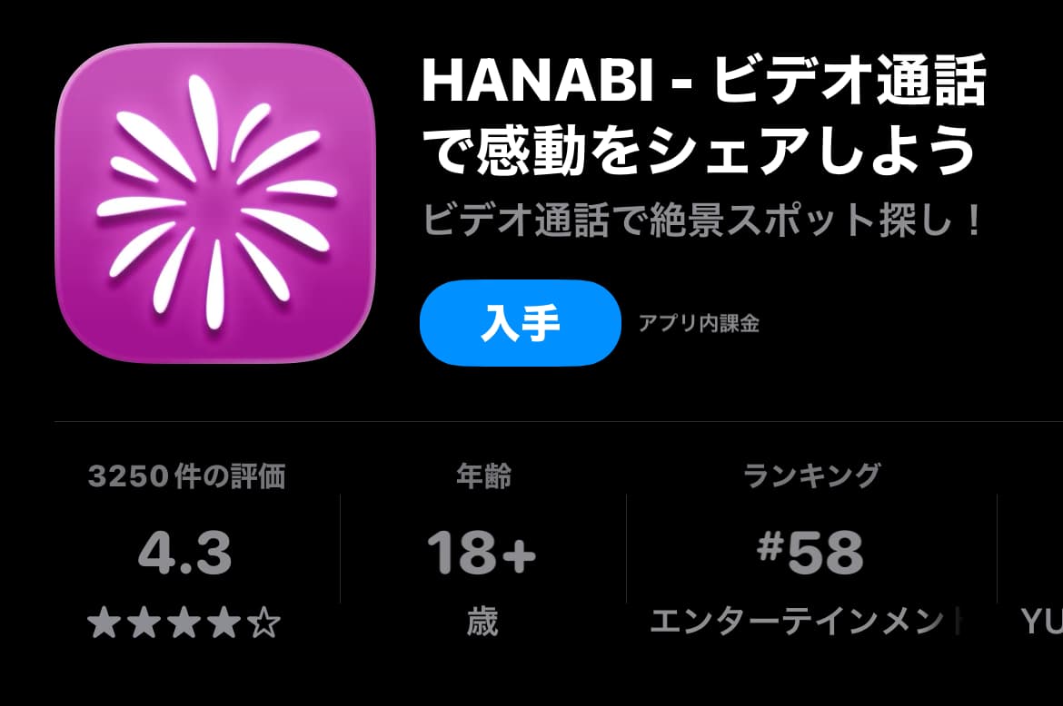 HANABI(ハナビ)のビデオ通話アプリは、紹介ページを見る限りだと「感動をシェアする」「花火や風景を一緒に楽しむ」みたいな、かなり爽やかな出会い系アプリに見えるんだよな。