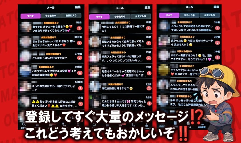 1. 登録直後から大量メッセージが届き、不自然さが強い