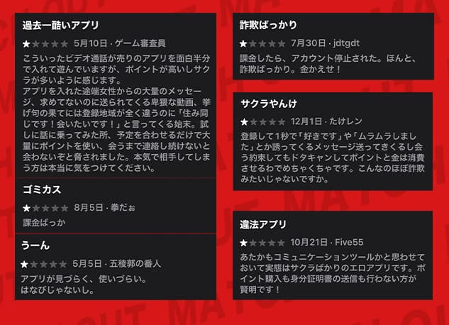 口コミや評判を見ても、「会えた」という声より「騙された」「思ってた内容と違った」という不満の方が圧倒的に多い。