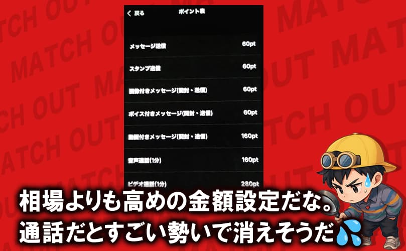 大手や優良な出会い系サービスだと、1通50円前後、月額定額制のところも多いから、それと比べるとかなり高額なのは間違いないね。
