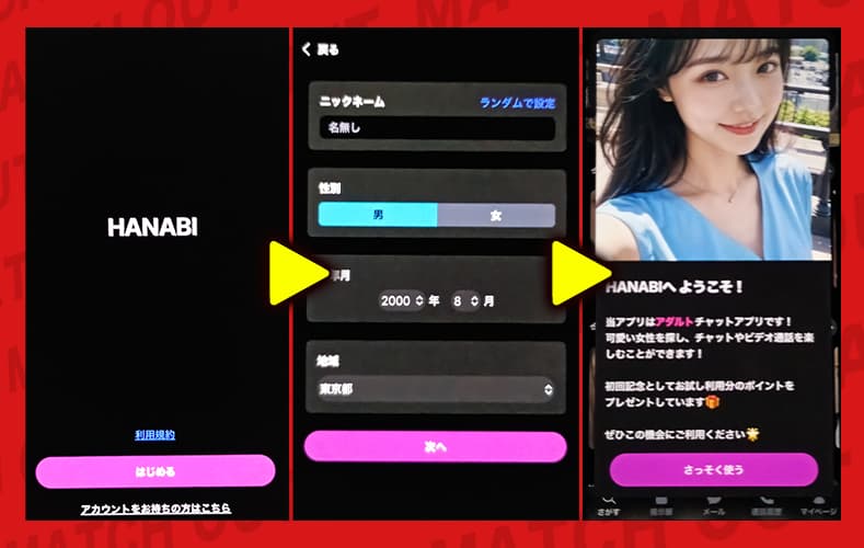 出会い|HANABI(ハナビ)のビデオ通話アプリを登録検証