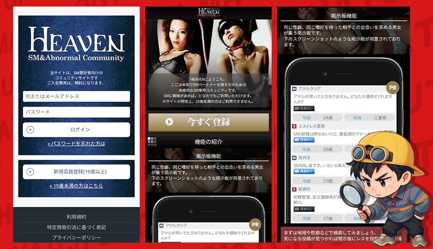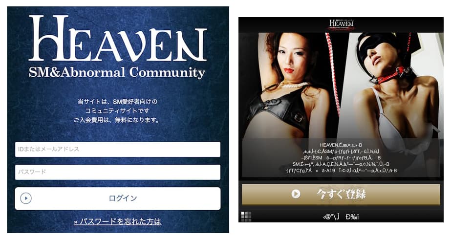 HEAVEN(ヘブン)は、紹介ページを見る限り「SMパートナー専門のコミュニティサイト」として案内されている出会い系サイトだな。