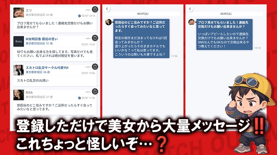 - 登録直後からサクラ疑惑の高いメッセージが大量に届く