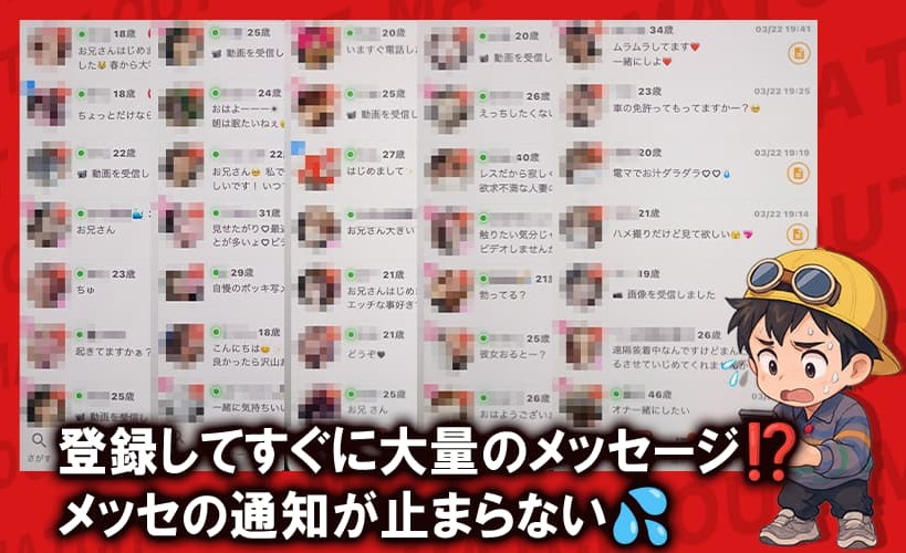 - 登録直後に大量メッセ=サクラ運営の可能性大