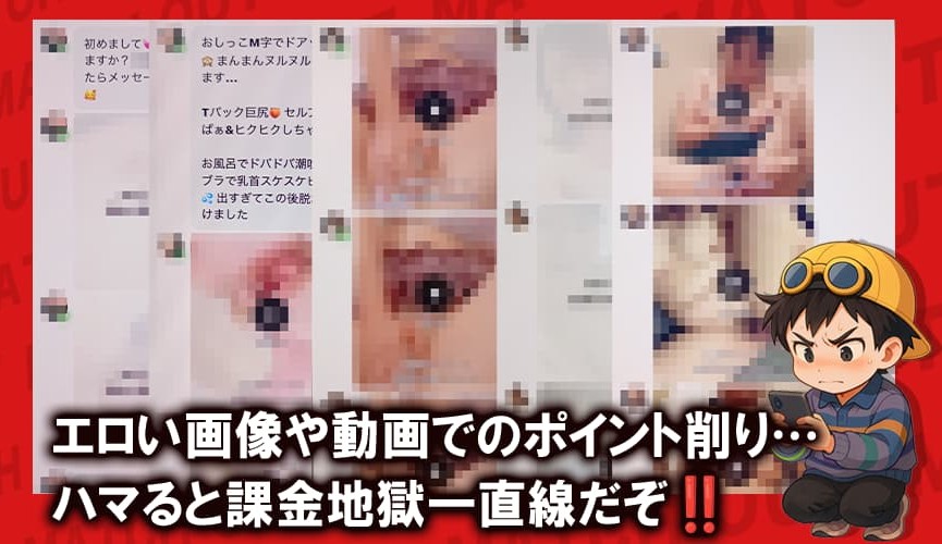 被害報告としては、「気づいたら数千円〜数万円課金していた」「画像や動画を見るだけでポイントが消えた」という不満が目立っていた。
