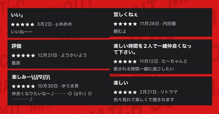 App Storeの高評価レビューでも、「楽しい」「癒される」「もっと仲良くなりたい」といった、会話自体に対しての声が多かったぞ。