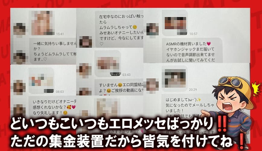 むしろ、エロ誘いのメッセージや通話に誘導して、ポイントを消費させる仕組みがかなり目立った…正直、冷や汗出たな(;・∀・)