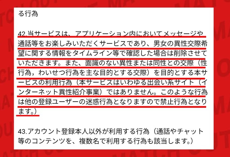 実際、禁止事項に「出会い目的の利用禁止」と記載されてて、これ出会い系アプリじゃないのか?って俺は思ったんだよな。