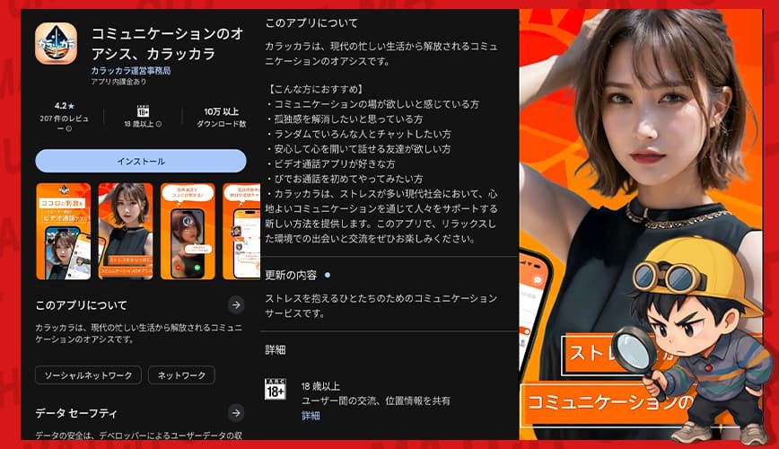 カラッカラのビデオ通話アプリは、紹介ページを見る限り「気軽に話せるコミュニケーションアプリ」として案内されているサービスだな。