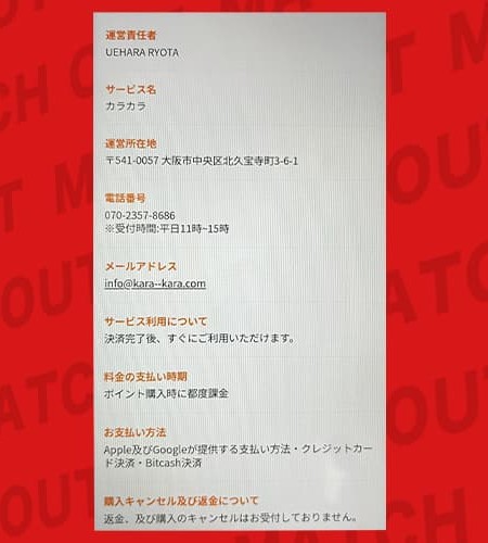 ここでは、カラッカラのビデオ通話アプリについて、特定商取引法や各種届け出を実際に確認してみた。
