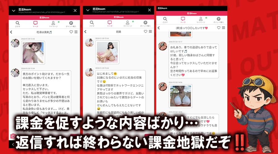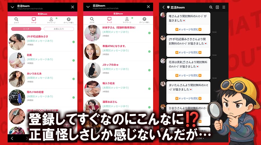でも、恋活Room(恋活ルーム)を実際に調べてみたら、怪しい実態が潜んでいたんだ❗️