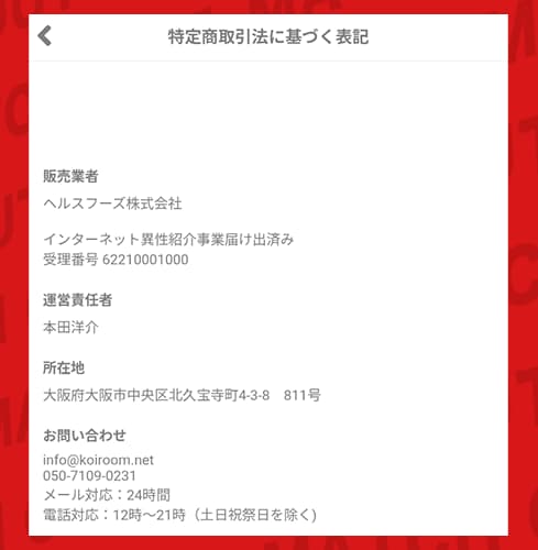 出会い | 恋活Room(恋活ルーム)の法的届け出と運営情報