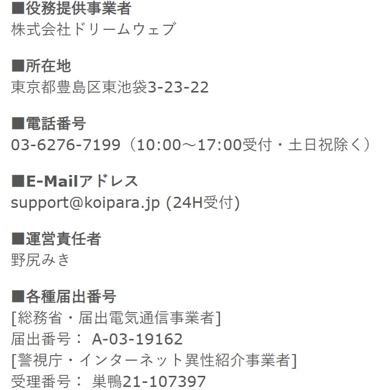 そこで今回は、「恋パラ」の特定商取引法表記や各種届け出について、順番に確認してみよう。