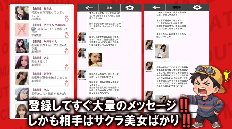 大量のメッセージが一斉に届くという、出会い系あるあるの展開だ。