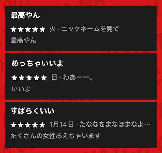 検証結果と口コミを総合すると、実際に出会えたと確認できるケースは非常に少なく、出会い目的で使うには厳しいアプリだと判断しています。