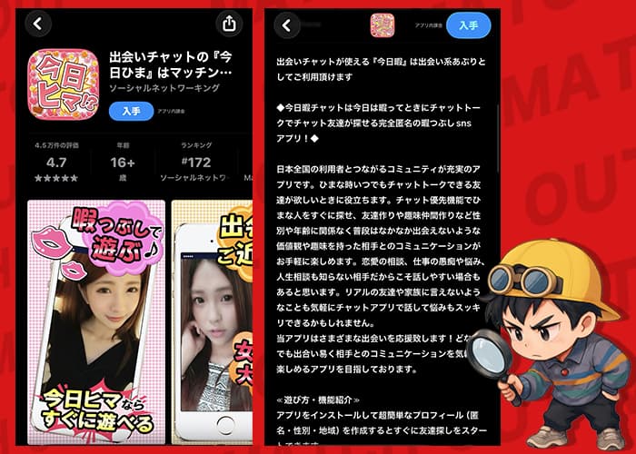 でも、確かに、だけど…今日ヒマ!?(今日暇チャット)を実際に使って調べてみたら、かなり気になる実態が見えてきたぞ❗️