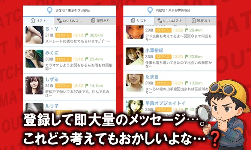 - 登録直後から誘惑メッセが大量で不自然