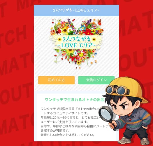 LOVEエリアは、紹介ページだと「ワンタッチで検索できるオトナの出会いをサポートするコミュニティサイト」って説明されてたな。