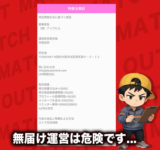 だから次は、ラブプラザがインターネット異性紹介事業の届け出をしているのか、運営情報に怪しい点がないかを調べていくよ。