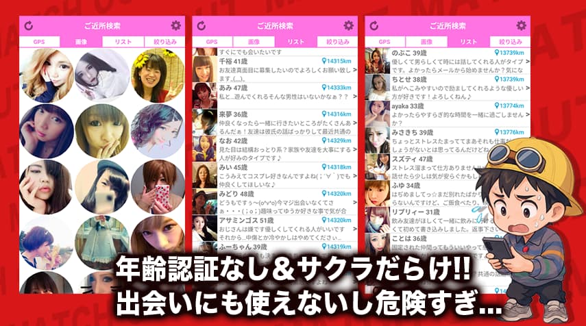 年齢認証・本人確認がない出会い系は、未成年トラブルや、業者・詐欺アカウントの混入リスクが上がります。