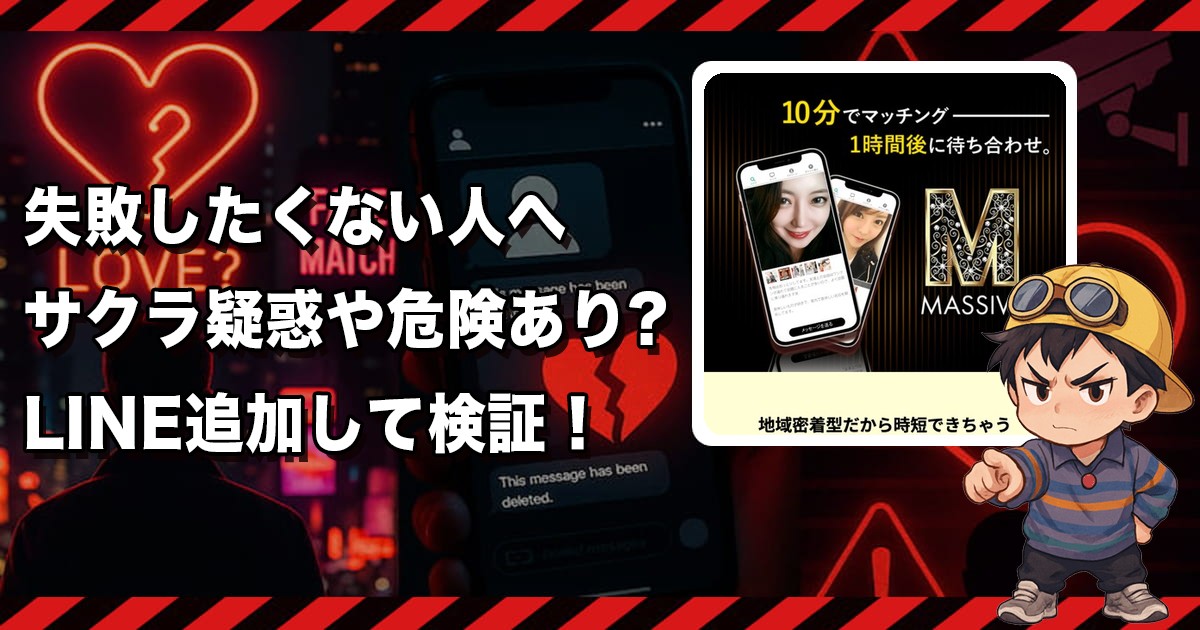 マサ、マッシブってやつさ、LINE追加したらすぐ出会えるって聞いたんだけど…これサクラとか大丈夫なん?💦