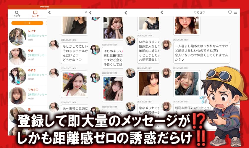 - 登録直後からサクラ疑惑のメッセージが大量に届く