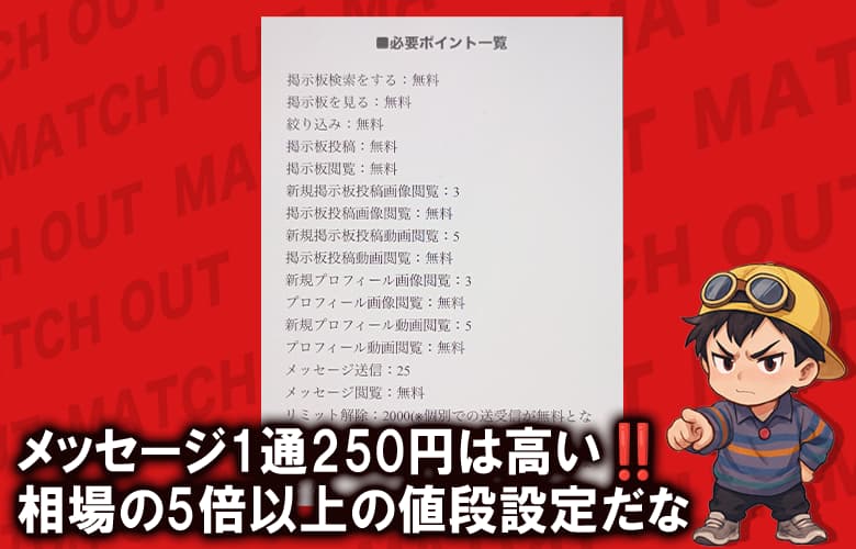 特に気になるのが、メッセージ1通で約250円かかる点だな。