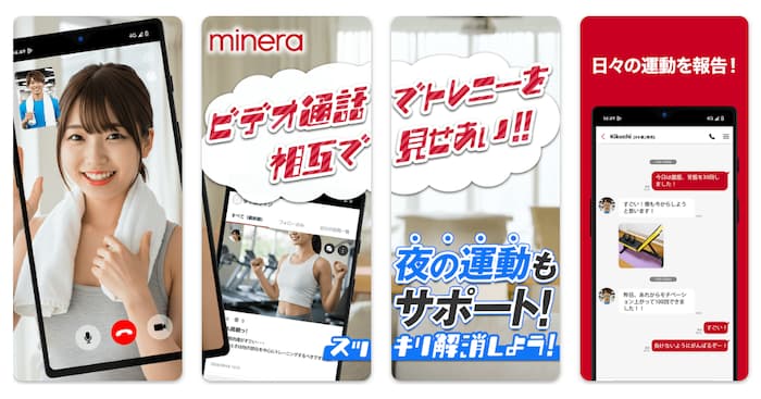 ミネラ(Minera)のビデオ通話アプリは、表向きは趣味やトレーニングの共有って書き方をしてる。