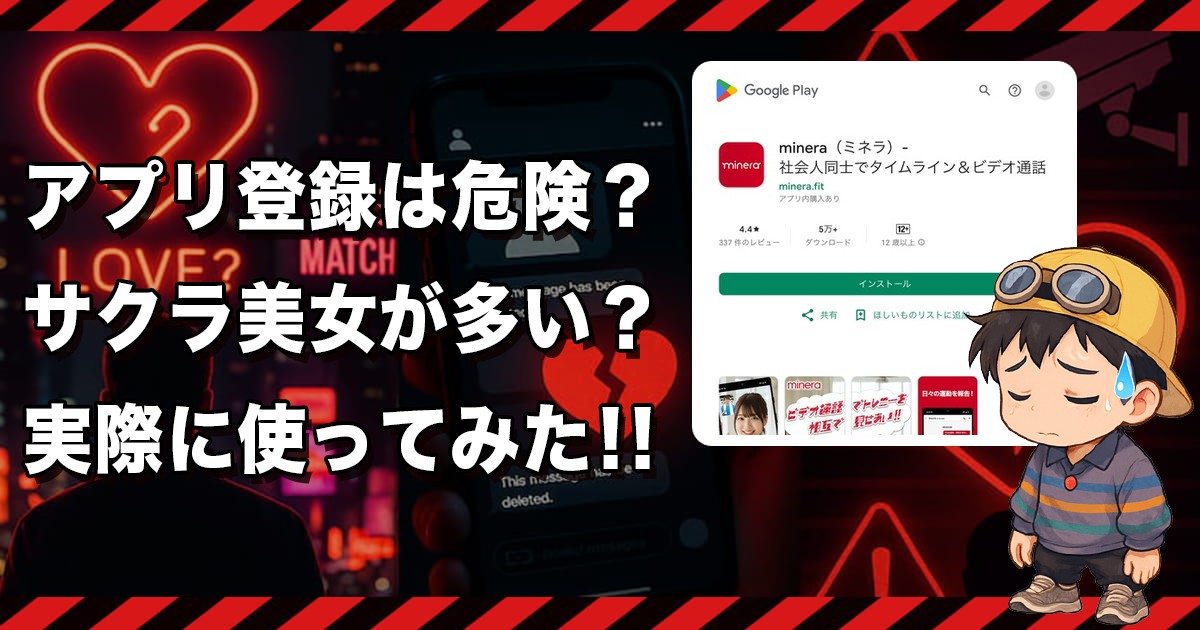 俺からはミネラ(Minera)のビデオ通話アプリでの恋活・セフレ探しはおすすめできません❗️