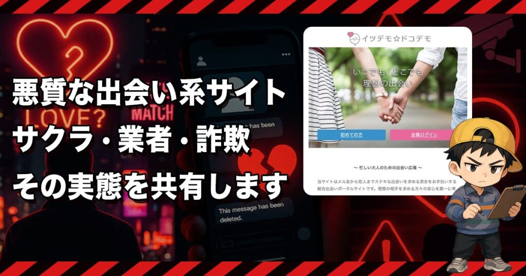 イツデモ☆ドコデモは危険な出会い系サイトか❣️サクラや業者の美女ばかりで出会えない危険あり