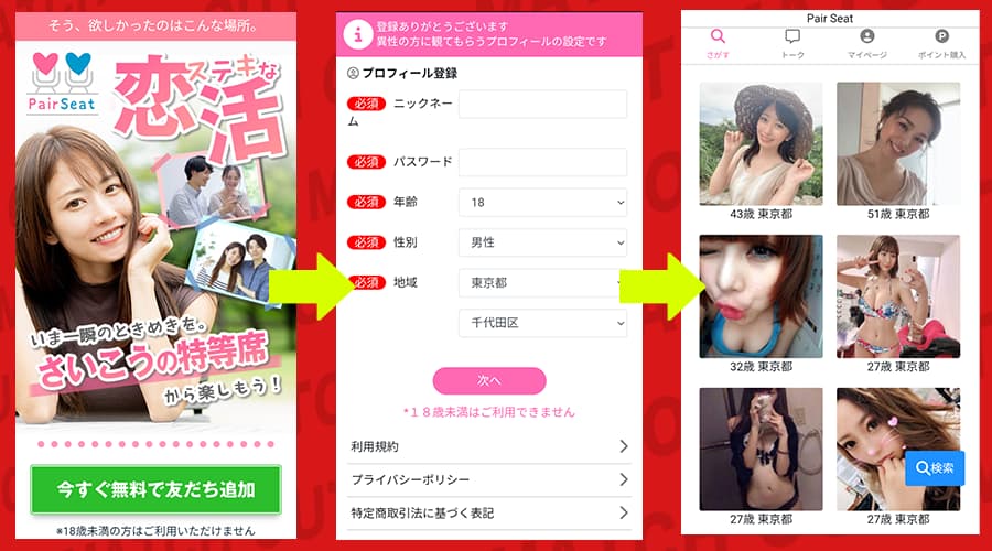 ここから「PairSeat(ペアシート)」について、登録の流れや実態、出会えないと言われる理由を、さらに深掘りしていくよ。