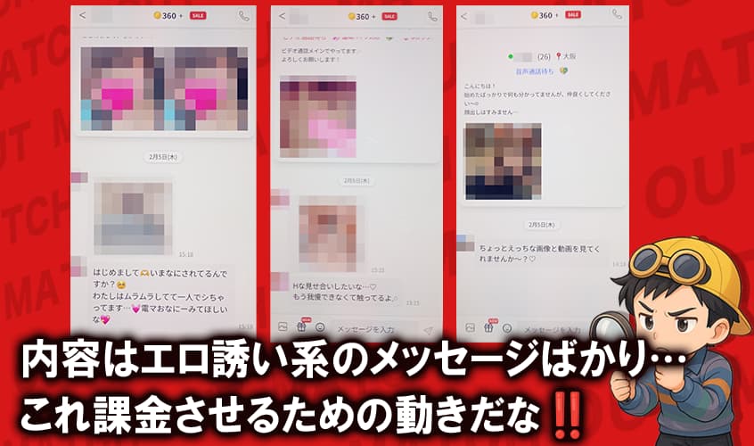 登録直後の大量メッセージもそうだし、エロ誘いが多い流れを見ると、ここはかなり怪しいな!って思ったぞ❗️