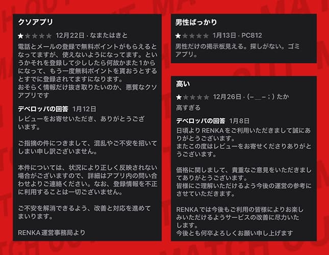 俺からはRenka(レンカ)での恋活・セフレ探しはおすすめできません❗️
